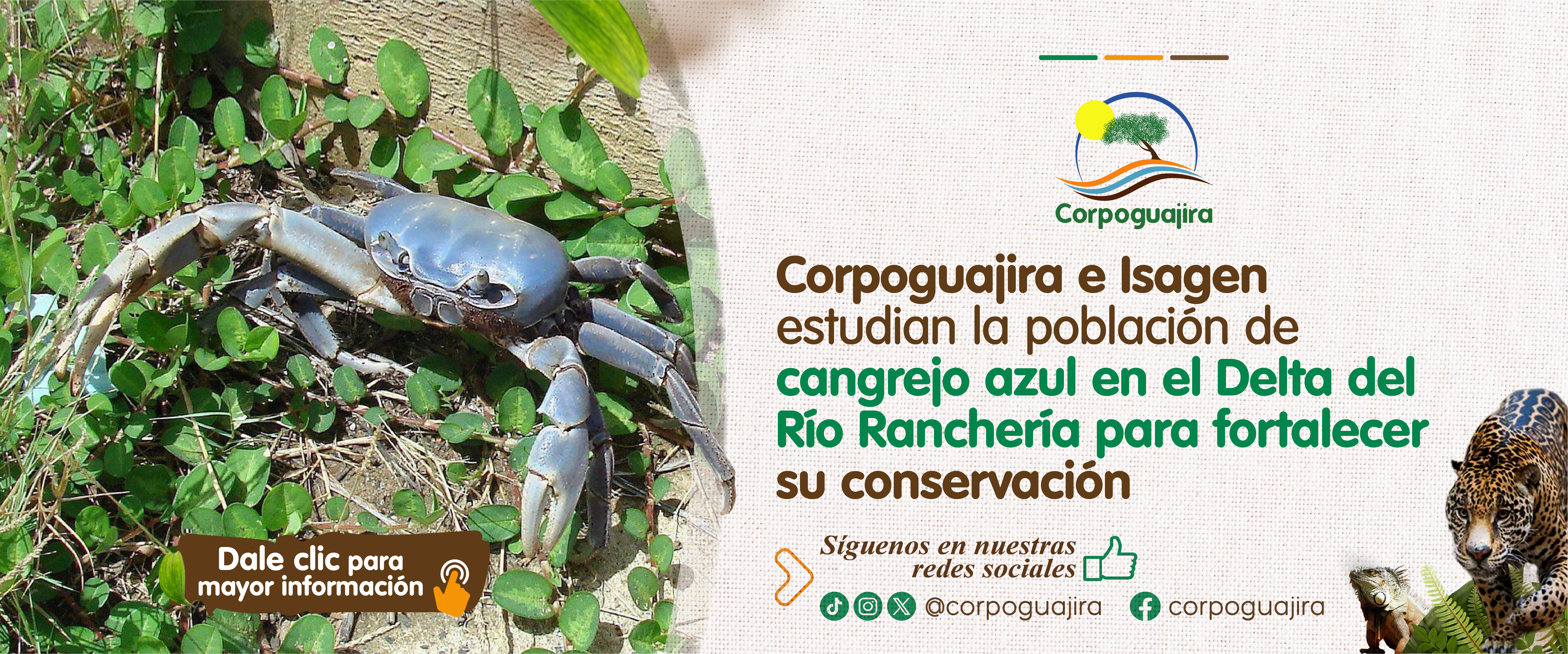 En un trabajo conjunto orientado a la protecci贸n de la biodiversidad del departamento, Corpoguajira e Isagen adelantan un estudio sobre la poblaci贸n de cangrejo azul