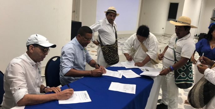The day ended with the approval of the Methodological Route for the development of the prior consultation process and the signing of a political agreement between the indigenous peoples of the Sierra Nevada de Santa Marta and Corpoguajira, agreeing on a commitment for the recovery and conservation of the natural resources that live there.