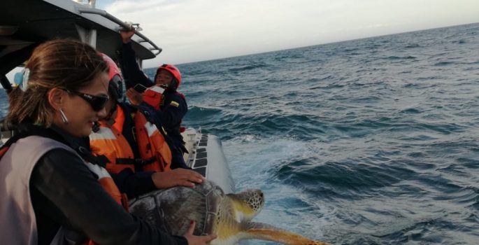 La labor fue liderada por la Policía Nacional (grupo ambiental), el Ejercito Nacional, la Armada Nacional y Corpoguajira, adentrándose 4 millas al mar frente a la estación y realizando el acto de liberación. Cada día es más frecuente contar con el apoyo y compromiso de entidades e instituciones del estado para la recuperación de especies en riesgo de comercialización.