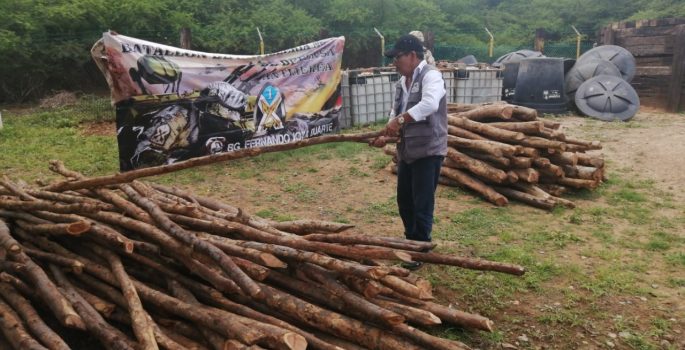 En continuos operativos de control la fuerza pública decomisa recursos naturales que son aprovechados y transportados de manera ilegal. En días pasados el Ejército Nacional desarrollo un operativo desde el municipio de Albania en donde incautaron 62 varas y 65 puntales de madera de la especie Yaguaro (Brasilettia mollis).