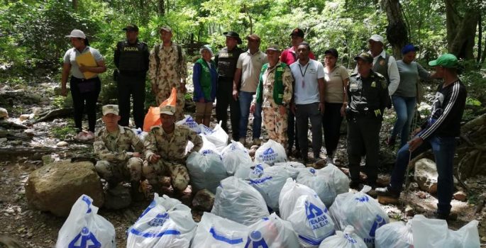 Zu Ende 300 kg Abfälle wurden diesmal für einen neuen Tag entfernt von der Reinigung Schutz Forest Reserve Manantial de Cañaverales, Zuständigkeit von San Juan del Cesar, südliche Departement La Guajira.