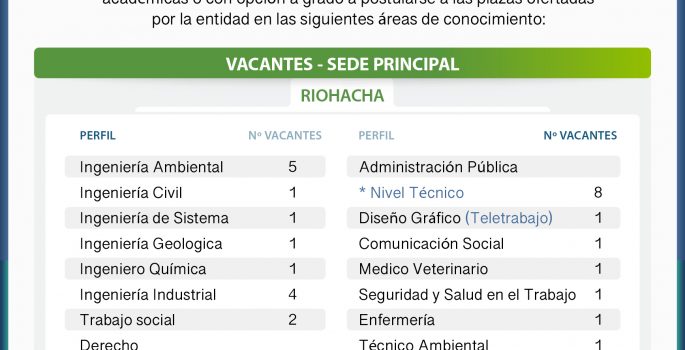 Convoca a los estudiantes universitarios interesados en realizar sus prácticas académicas o con opción a grado a postularse a las plazas ofertadas por la entidad en diferentes áreas.