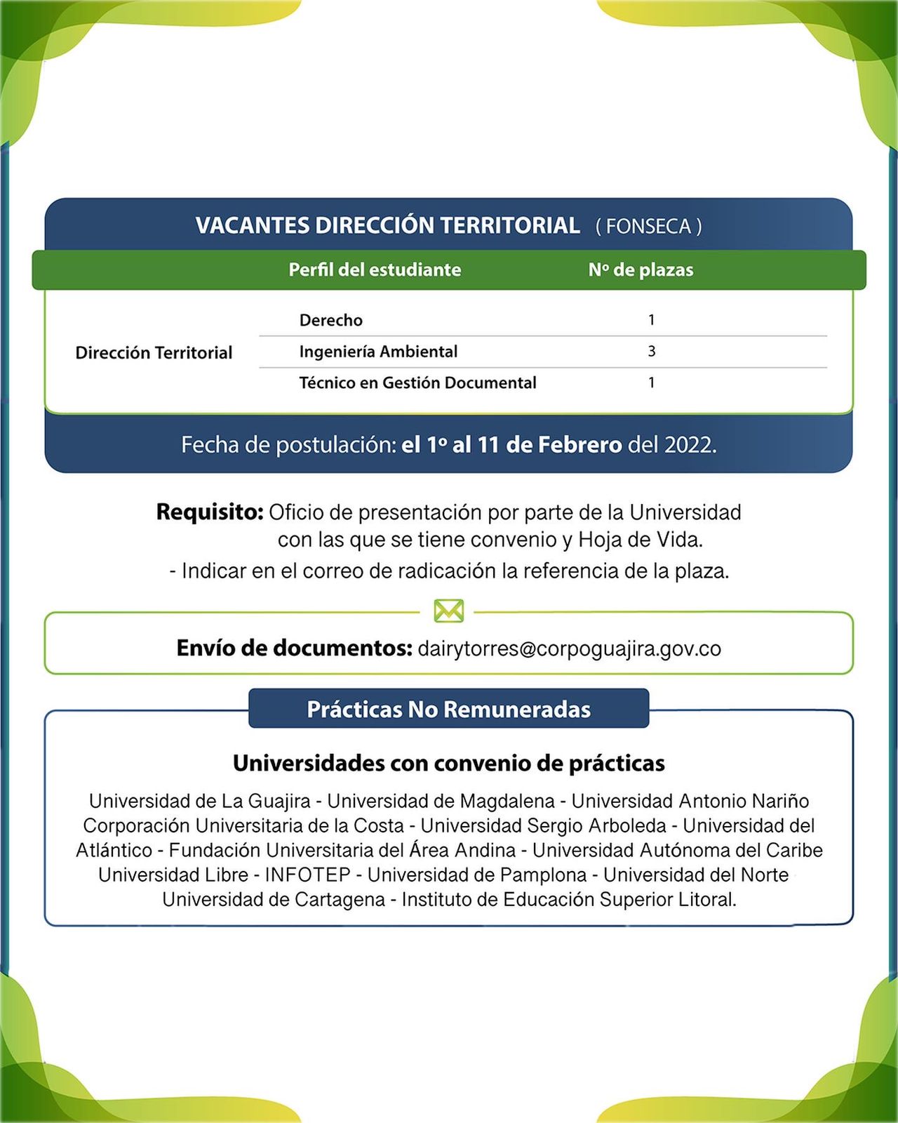 Au total, 27 Corpoguajira lance un appel à stages académiques, Corpoguajira lance un appel à stages académiques.