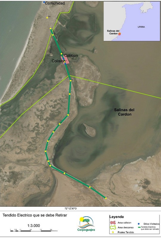 A medida estabelece a Corporação Autônoma Regional de La Guajira- Corpoguajira, Depois de fazer várias visitas no El Cardon, onde verificou-se que a morte de flamingos, é porque estas espécies colidiram com as linhas eléctricas que estão instalados no aterro levando a esta comunidade.