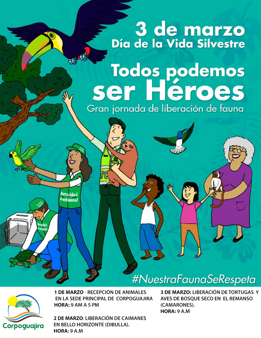 La più alta autorità ambientale, Estende l'invito in modo che l'intera comunità di Guajira sia collegata a queste attività e partecipa attivamente, consegnare volontariamente quegli animali che ha in suo possesso come animali domestici, Per la loro rispettiva liberazione.