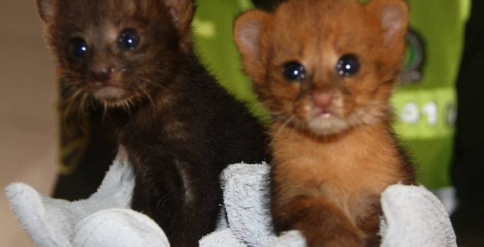 Gli animali non sono stati trovati alla prima visita di ispezione, tuttavia, ha svolto un lavoro di sensibilizzazione informando che mantenere la fauna selvatica in cattività è considerato un reato. Dopo poche ore dalla visita, ricevuto una telefonata da uno degli abitanti che sosteneva di aver trovato 2 gatti piccoli, Mentre si avvicinavano di nuovo, assistettero alla resa volontaria di un indigeno Wayuú, identificando 2 coguari di un giorno.