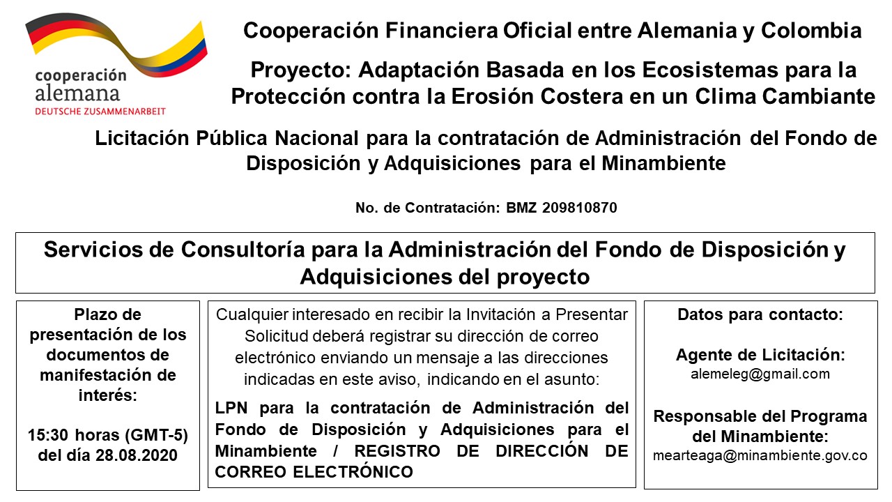 | PROJET | MINAMBIENTE-KFW. COOPÉRATION FINANCIÈRE OFFICIELLE ENTRE L'ALLEMAGNE ET LA COLOMBIE- NON. 2098.1087.0 |