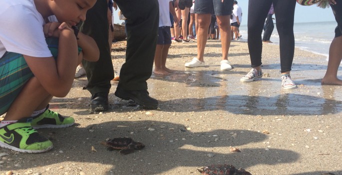 Los estudiantes de la institución educativa “Am Happy” (Riohacha), fueron los encargados de liberar al mar caribe 30 tortugas (3 meses de nacidas), de la especie Caretta-caretta.