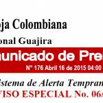 La oficina del Sistema de Alerta Temprana, conformada por Corpoguajira y la Cruz Roja Colombiana, Seccional Guajira, emiten los siguientes informes técnicos por formación de la tormenta tropical “MATTHEW” […]
